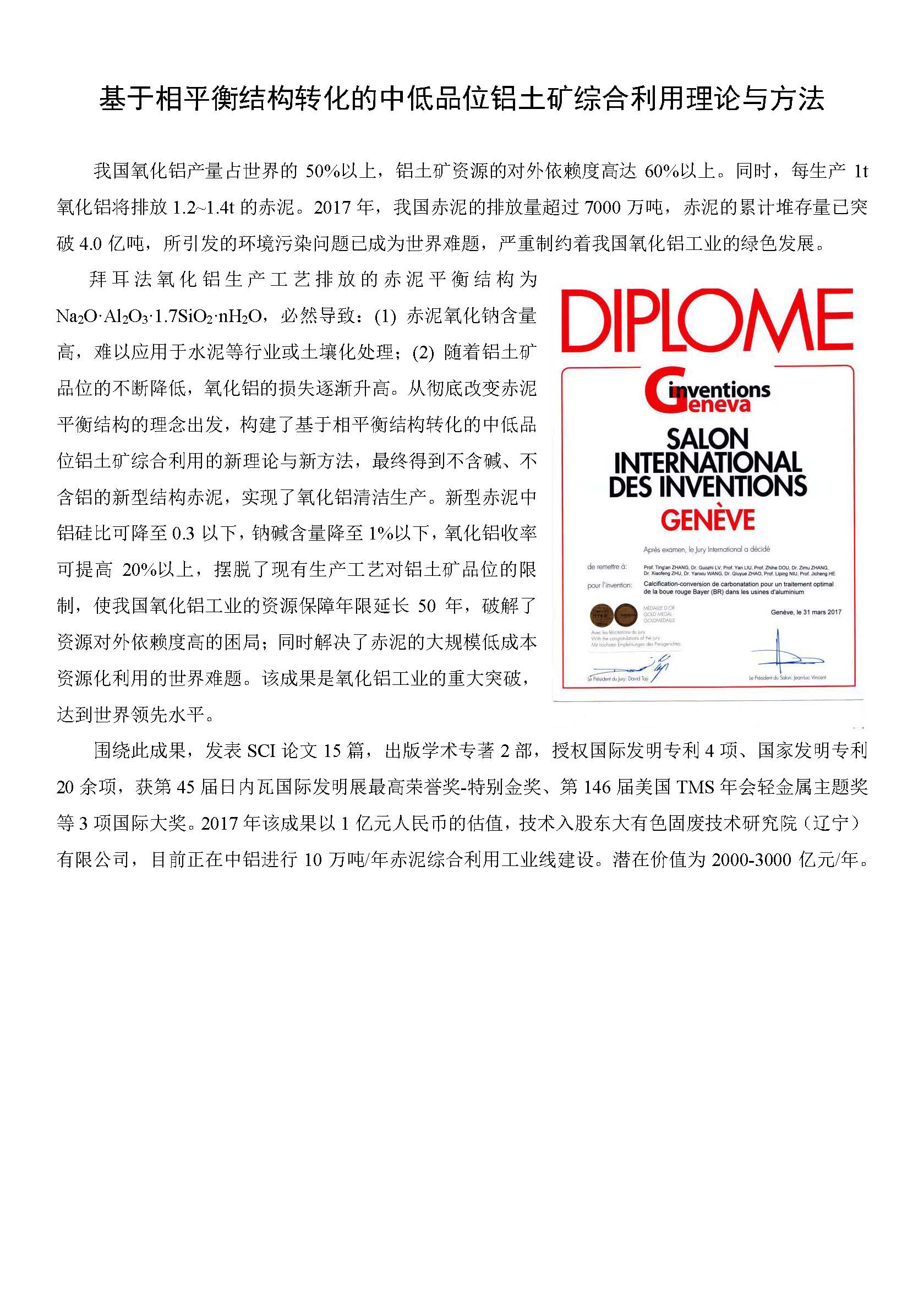 基于相平衡结构转化的中低品位铝土矿综合利用理论与方法