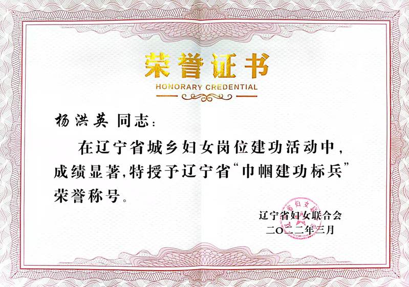 据悉,辽宁省“巾帼建功标兵”是省妇联为表彰在辽宁省各行各业中立足本职,为推动城乡经济发展、促进社会和谐作出突出贡献的优秀女性而授予的荣誉称号。