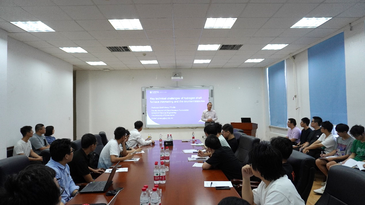 本次报告,王国雄王教授首先阐明了氢气或含氢物质在炼铁过程中的机理、优势,之后针对氢气竖炉炼铁面临的关键技术挑战作出了详细讲解,并提出了解决方案。报告之后,与会师生和同学们针对自己关心的问题和疑问与王国雄教授进行了交流,受益匪浅。