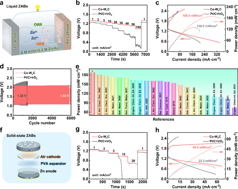 单原子催化剂以其金属利用率高、活性位点最大化的特点,被认为是开发高性能双功能电催化剂的重要途径。可调的电子结构为高效电催化剂的设计提供了理想的平台。目前,大多数报道的双功能SAC是基于M-N-C结构,原子金属(M)分散在氮掺杂碳(N-C)衬底上。然而,N与金属之间的相互作用极有可能形成聚集体,这极大地限制了金属原子的负载,从而减少了ORR/OER的有效活性位点的数量。对碳化钨衬底的探索是基于其优异的耐化学腐蚀性、高导电性、类铂电子性能以及没有强杂原子配位的活性中心等优点,这些是设计高效耐用的双功能电催化剂的先决条件。分散的Co单原子和边缘界面的Co超晶格的存在结合了原子催化和超结构催化的优点,最大限度地提高了金属的利用率,提高了表面催化活性。这项工作提供了对原子催化剂的新见解,为设计用于电催化和储能系统的先进材料开辟新的道路。东北大学分析测试中心为本文的数据采集和表征工作提供了重要支撑。