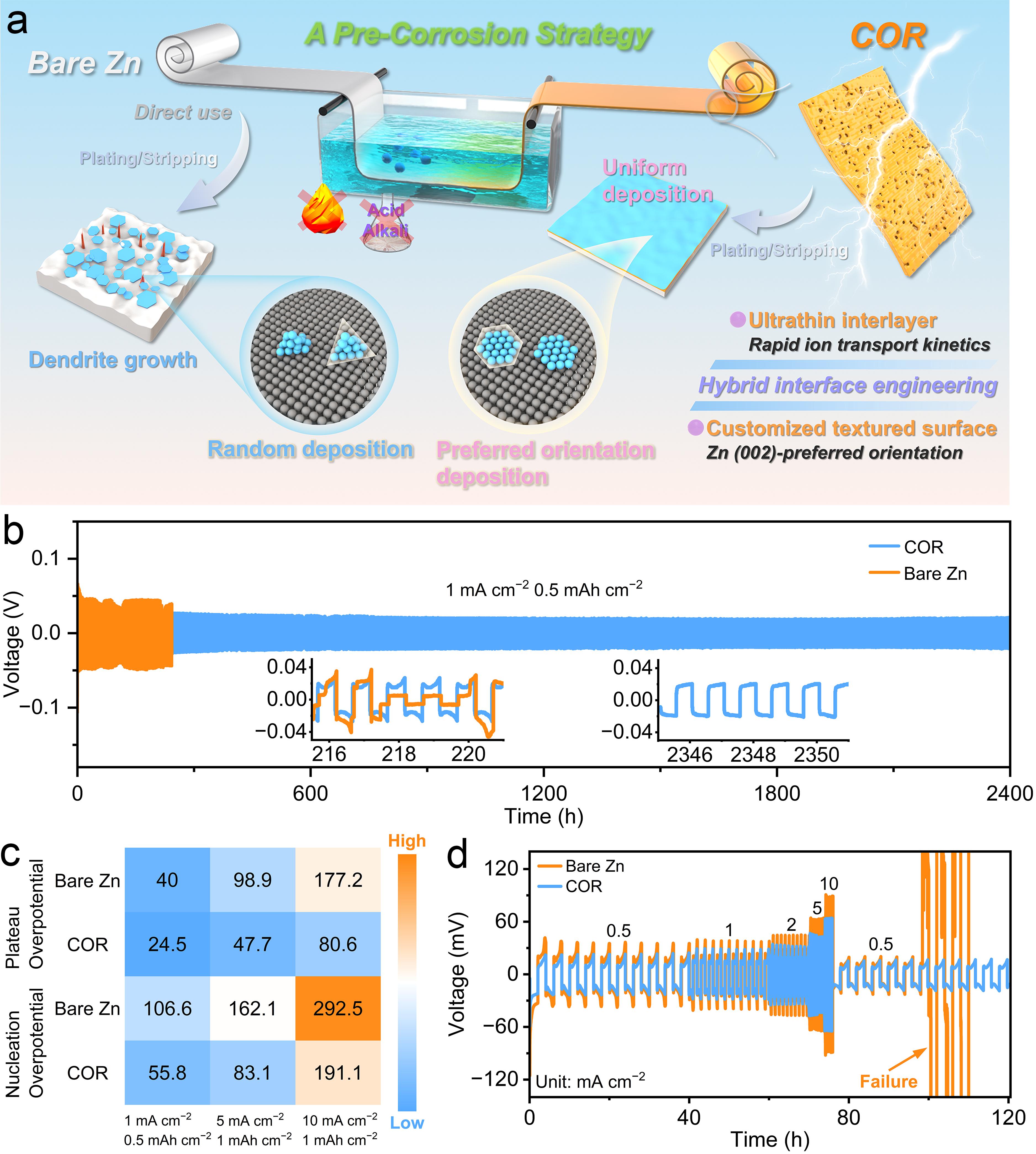 图1 COR电极预腐蚀策略设计理念及电化学性能