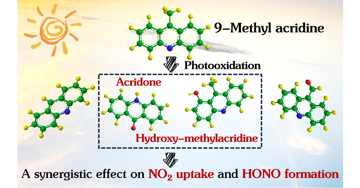 在对流层大气中HONO发挥着重要作用,外场观测数据表明约20%–80%的OH自由基(•OH)来源于HONO光解过程。•OH作为大气中重要的强氧化剂,其环境浓度可有效表征大气氧化能力水平。尽管HONO在大气化学过程中发挥着关键作用,但其具体来源及生成机制至今尚未完全阐明。本研究工作耦合实验研究、量子化学模拟等手段,从动力学、机制等方面系统考察了NO2与含氮杂环有机物及其对应苯系物的非均相反应,评估该过程对大气中HONO来源的贡献。研究结果表明光照显著促进了含氮杂环有机物及其对应苯系物界面NO2转化生成HONO的过程。NO2摄取系数、HONO生成通量与有机物光激发产生电子的能力呈线性正相关,说明NO2经光生电子还原生成HONO。化学组成结构分析结果表明,NO2摄取过程中,含氮杂环有机物消耗生成含氮产物、含氧产物和脱甲基化产物,其中原位生成的酮类和酚类等含氧产物分别作为电子受体和电子给体,协同促进NO2转化生成HONO。基于动力学数据可知含氮杂环有机物及其对应苯系物界面NO2光化学摄取生成HONO的源强度最高可达660 ppt h–1,该过程可能是大气中日间HONO的重要潜在来源之一。