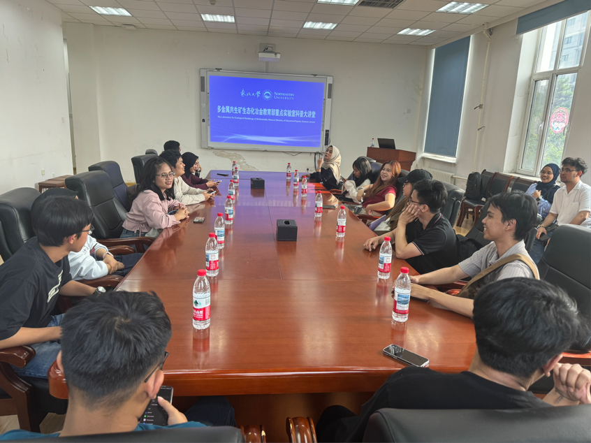 随后,印尼研究生们参加专题讲座,讲座由多金属共生矿生态化冶金教育部重点实验室博士生何亮主讲。