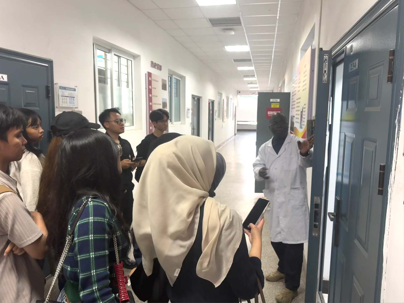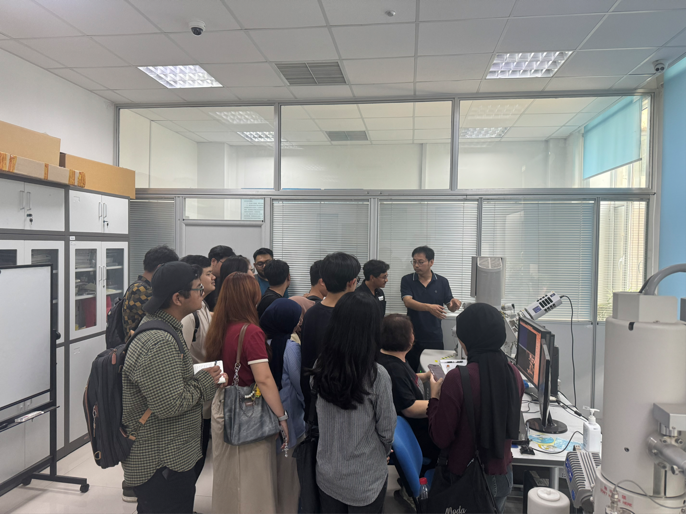 印尼硕士研究生们在Diop、傅大学两位专业教师的引导下,分批次参观了实验中心多个先进的实验室设施,包括高温拉曼光谱分析室、金属成分分析室以及虚拟现实实验室等等。两位教师详细介绍了各实验区域的功能、设备操作流程及特定的安全预防措施,同时展示了正在进行的前沿研究项目,激发了学生们浓厚的学术兴趣与创新灵感。